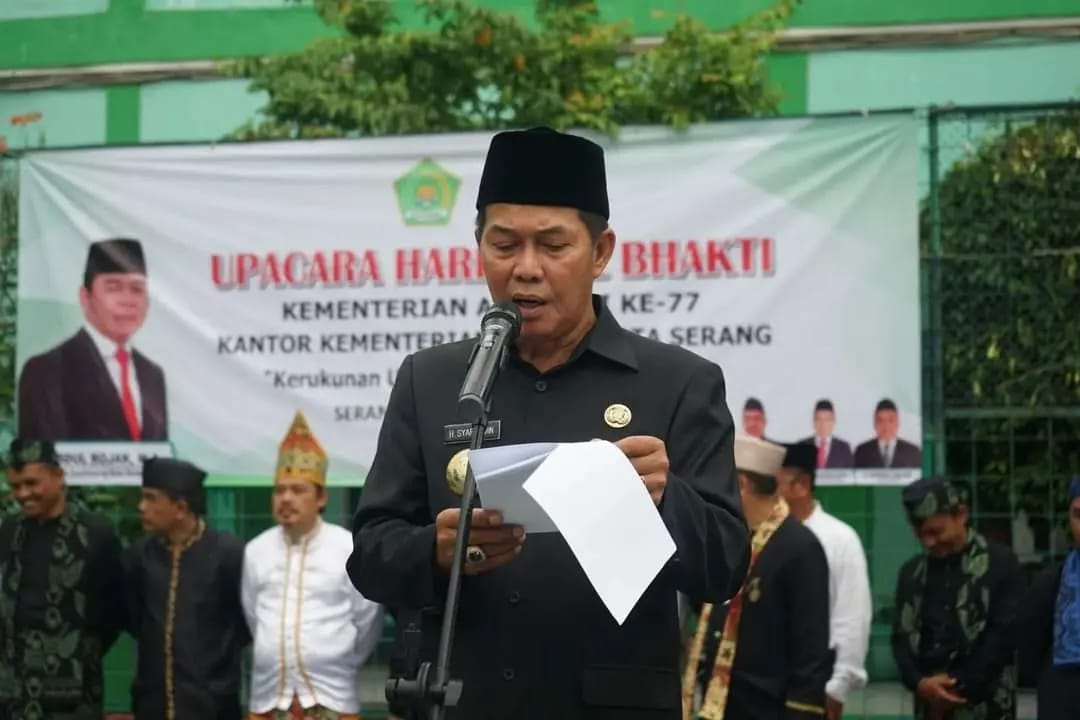 Walikota Serang Syafrudin, berkesempatan menjadi pembina upacara dalam perayaan hari amal bhakti (HAB) ke 77 dilingkungan Kementerian Agama Kota Serang.